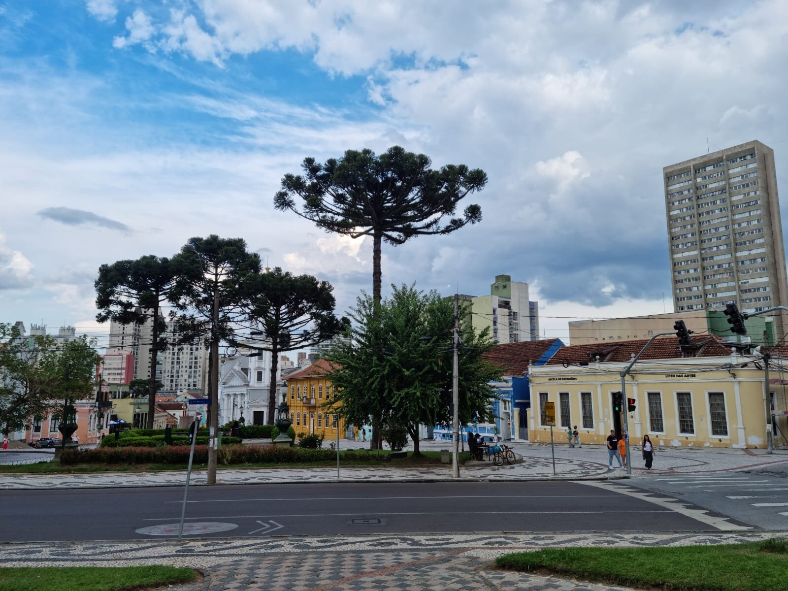À esquerda das árvores, observa-se o Solar do Rosário, edificado no final do século XIX por Ignácio de Paula França. Atualmente, o imóvel é conhecido como Solar da Cultura e, desde 2020, funciona como espaço expositivo e sede administrativa da Fundação Cultural de Curitiba.