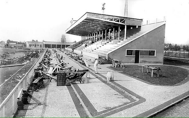 Uma dessas reformas foi a construção de arquibancadas de concreto, como vemos nessa fotografia de 1950.